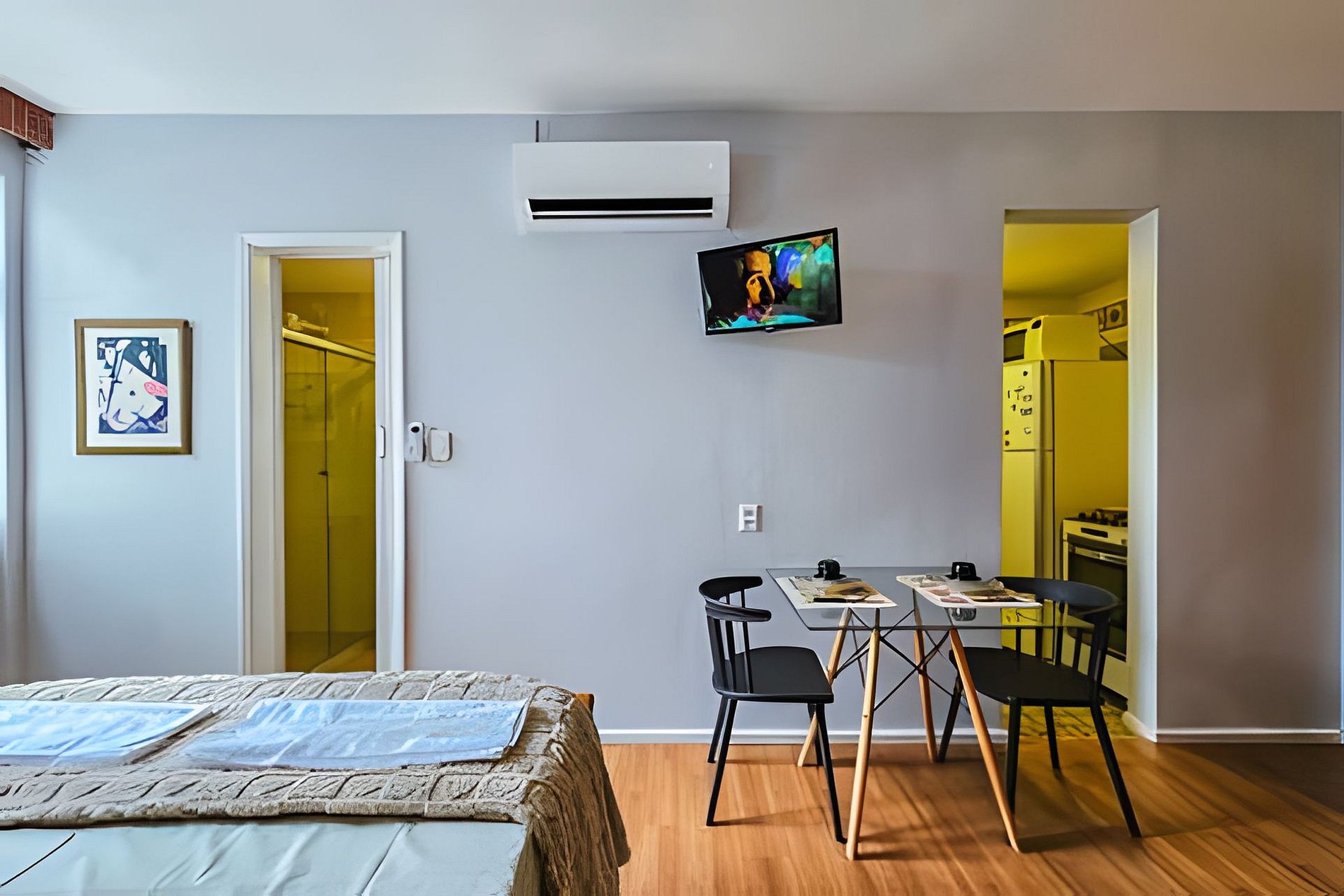 O apartamento tipo estúdio foi cuidadosamente projetado para oferecer uma experiência de hospedagem prática, confortável e eficiente, ideal para quem valoriza funcionalidade sem abrir mão do bem-estar. O ambiente é totalmente climatizado, bem distribuído e equipado com itens essenciais que garantam uma estadia tranquila, seja para viagens a lazer, trabalho ou eventos. Cada detalhe foi pensado para proporcionar conforto imediato, permitindo que o hóspede se sinta em casa desde o primeiro momento.